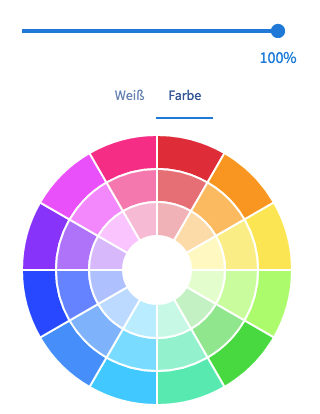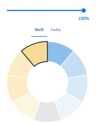 Bajo "Brillo y color" puedes establecer un color o una temperatura de color para la lámpara led. El brillo se utiliza para ajustar la luminosidad de la lámpara led.